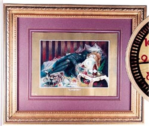 Features risqu artwork produced by Western Coca-cola Bottling Co. The sign actually measures 7.5"x10". Beautifully framed and matted under glass. This is the exact piece pictured on page 445 in Petretti's 11th edition. Has only 1-2 very minor shallow crimps, a few very light creases, small closed tear, lower left corner. Some smudge marks and faint fingerprint marks on the shiny outer gold border which has a nice patina at this point. A few small spots and pecks, minor ripples, in the paper. Still an outstanding piece with wonderful presentation and great desirability and strong vibrant color. Being critical call cond. 8.0-8.3, but displays closer to 9.0+.