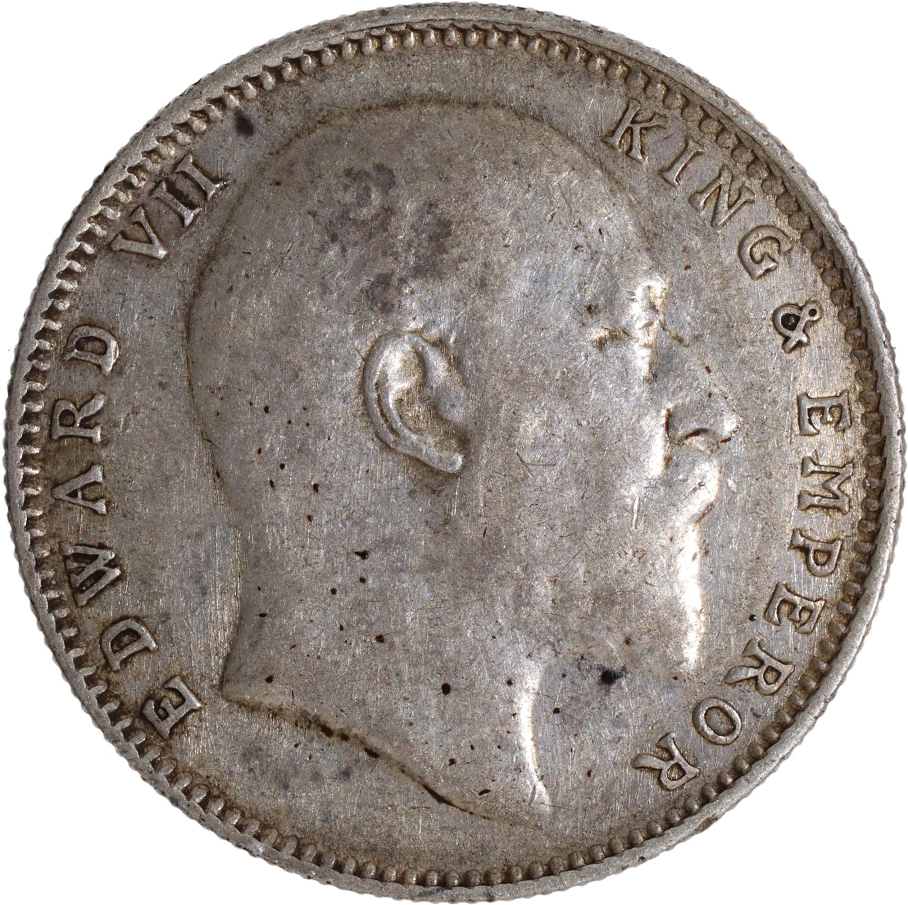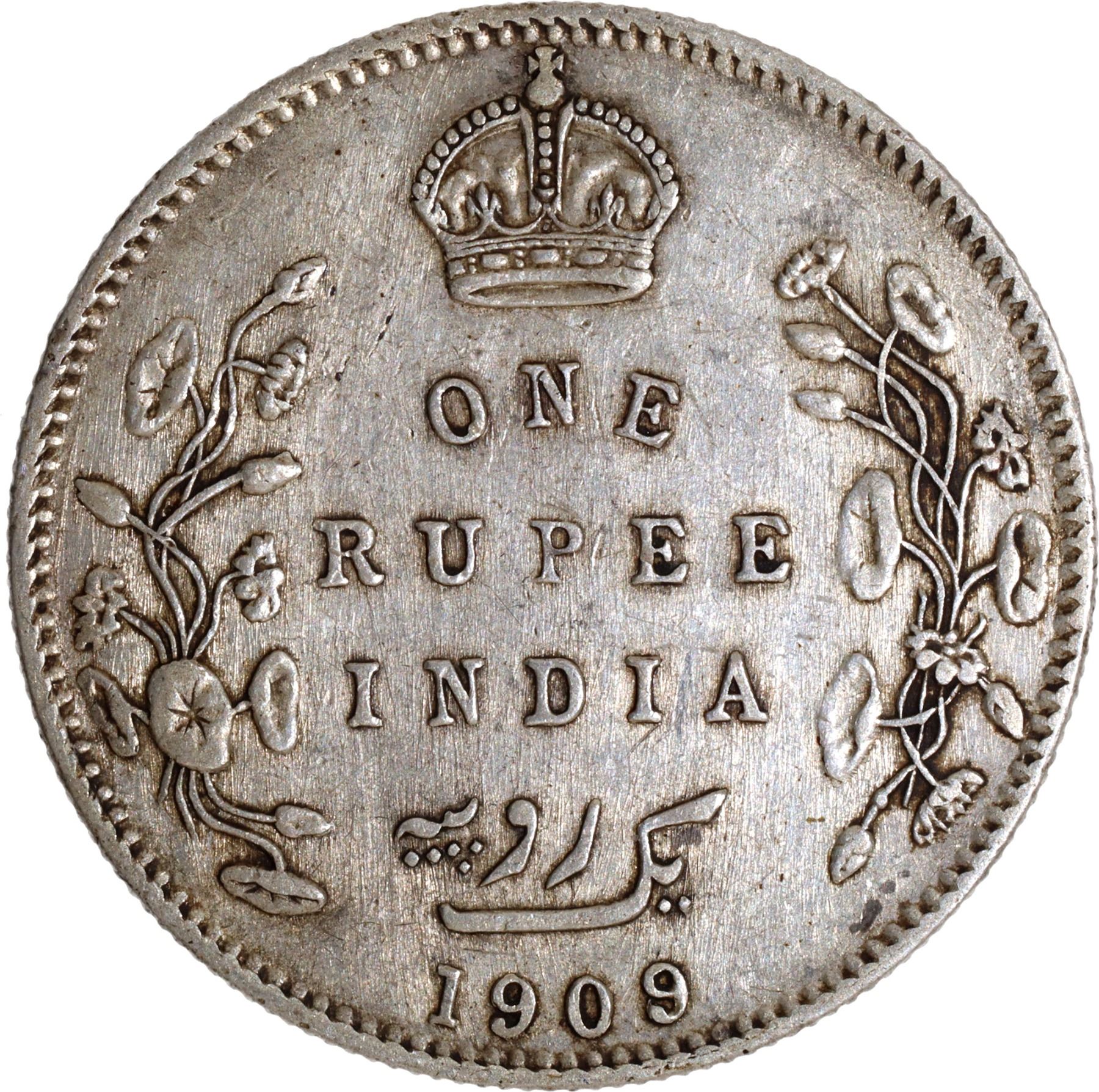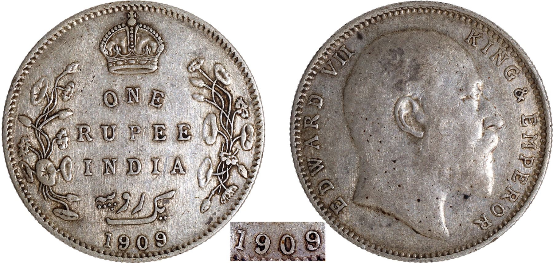 1909 (9 over 8), King Edward VII, Silver Rupee, Bombay Mint, traces of numeral '8' seen behind last numeral '9', B incused & dot, (Unlisted in PR/GK # 951), about extremely fine, Rare.