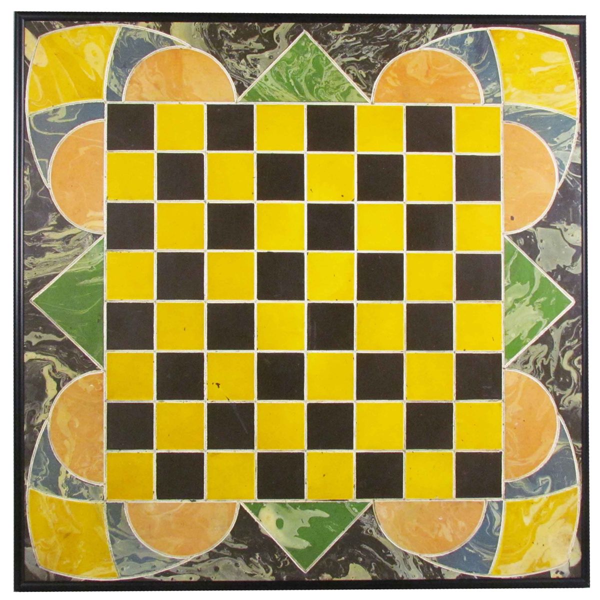Rare 1920's Decorative Slate Checkerboard. Framed, 20 inches square.