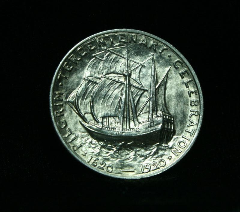 Beautiful Example of the much Rarer 1921 Pilgrim. Blazing Luster, A dynamite Example. Comparing Mintages, 152K of the 1920 were released and only 20K of the 1921. When examining a Pilgrim (20 or 21)look for wear on the crow's nest and on the Cheek Bone on the obverse as these are the high points. Coin World's Coin Values lists ms65 at $500 and the Wholesale Greysheet Value of ms65 is $390. Estimated Value $400