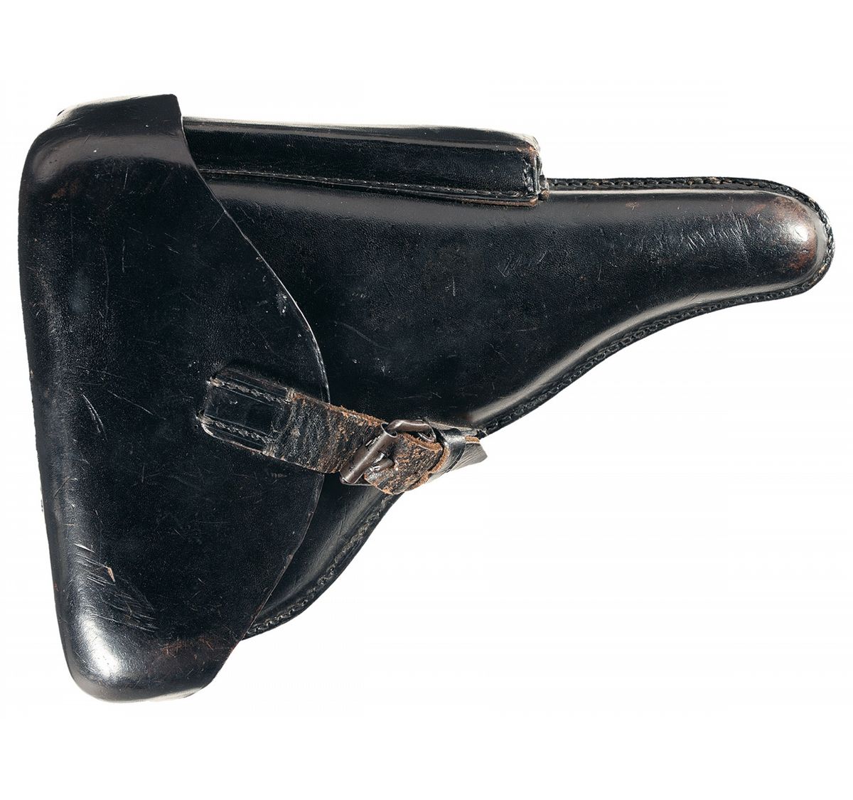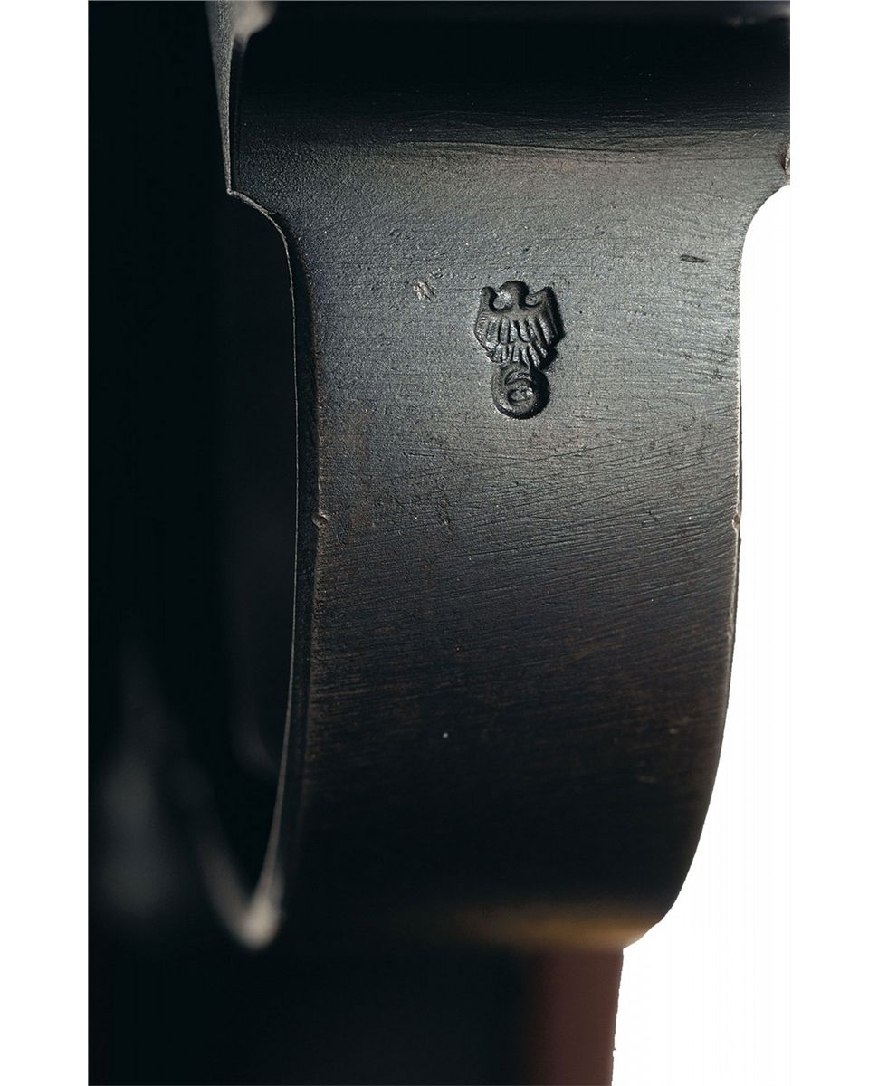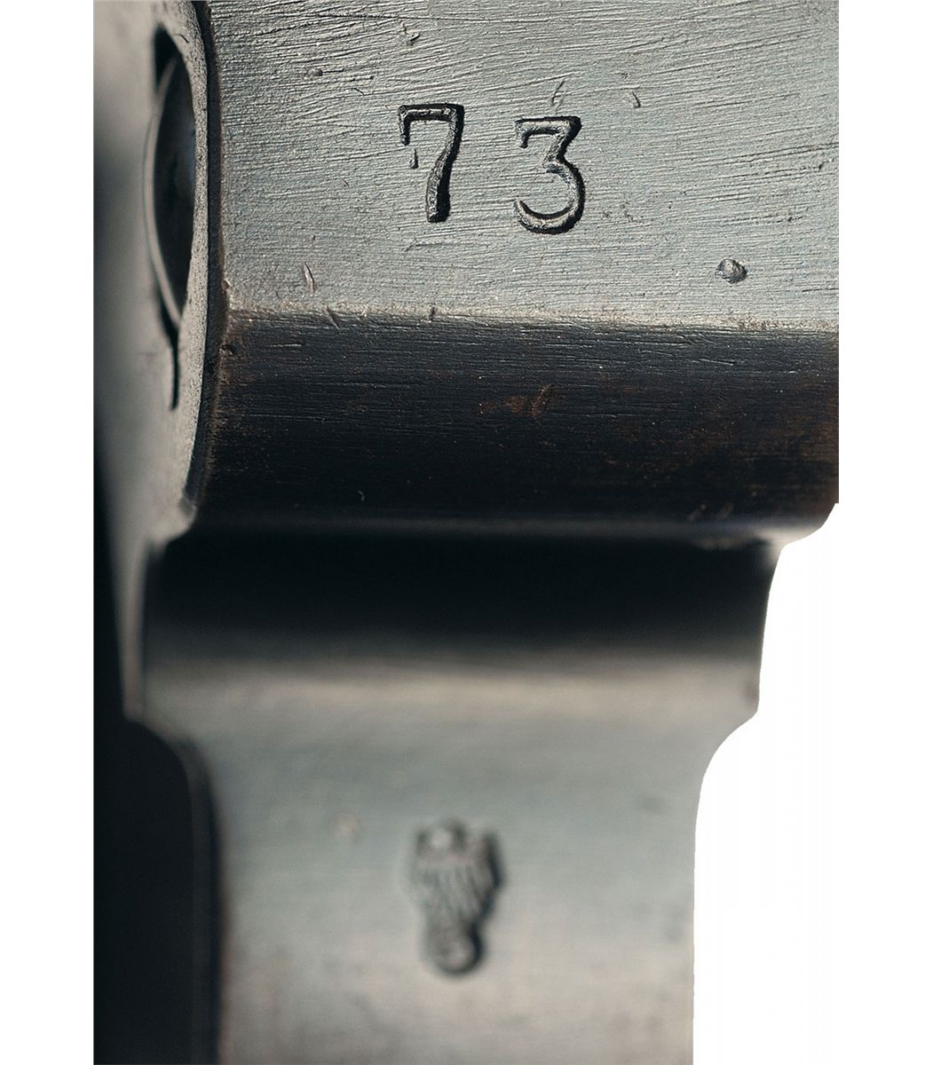 This is an extremely rare and excellent example of a Weimar era 1925 dated Simson & Co. Suhl Luger pistol, serial number "73". They were issued to both the Weimar Military and Police units up through the late 1920s before Hitler came into power and abolished/closed the Simson Company. The top of the chamber is dated 1925 and the front toggle is marked: "SIMSON & Co./SUHL". The right side of the barrel extension has several small "Eagle 6" acceptance/firing proofs along with the small Weimar Eagle acceptance proof. It has the military style serial number placement with the full serial number on the major components with the last two digits on the small parts with the "Eagle/6" Simson acceptance proof on many if not all of the small parts. It has the standard "GESICHERT" and "GELADEN" safety and extractor markings. It is fitted with standard checkered walnut grips. It is also complete with a renumbered matching magazine that has the nickel plated magazine body with the aluminum base marked "73", an original early Police style Luger holster that is marked on the front: "Early Weimar Eagle/WaA78" over "C. Pose A.G./Berlin/1926". This holster is the scarce pattern that has the additional flap over the takedown tool pouch and slot for the small pin-punch.