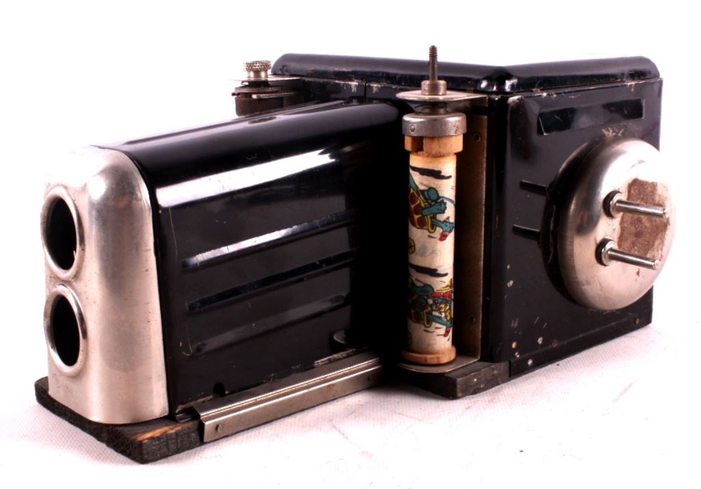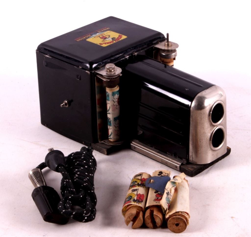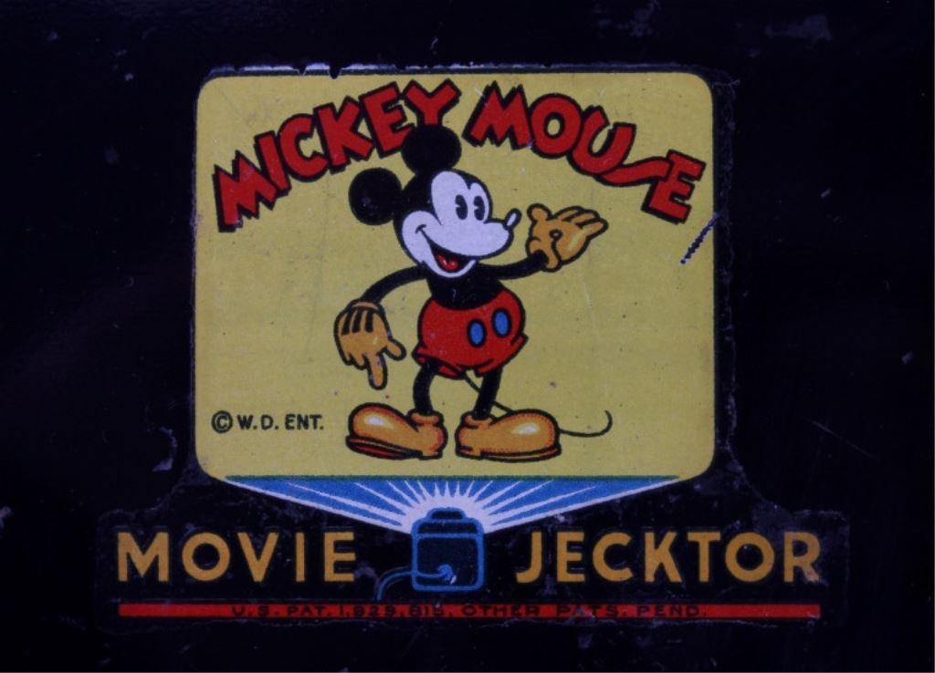 This is a rare Mickey Mouse "Movie Jecktor" projector from the 1930's. The projector comes with four reels. These projectors were only made for a couple years during the '30's. Being that these were made during the end of the depression, they are quite scarce and rarely come on the market. This projector is in good overall condition and does work. It measures 7" x 10" and is 5" tall.