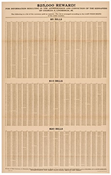 "$25,000 Reward! - For Information Resulting in the Apprehension and Conviction of the Kidnapers - Of Charles A. Lindbergh, Jr."