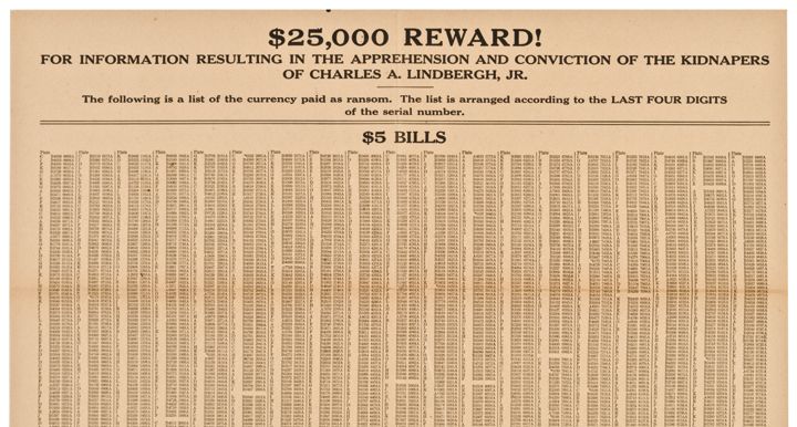 Rare 1932 Lindbergh Baby “$25,000 Reward” Broadside