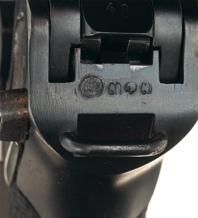 This is an exceptionally rare 1936 dated Mauser Banner Commercial Contract Luger for Siam, now called Thailand. This is probably one of the best Siamese Contract Mauser Banner Lugers we have ever seen. These are an extremely scarce Luger as there were only 450 total produced for this contract and of that number, only 350 were the short barrel model. Only a very few of these lugers were ever available on the market until 1981/82 when 61 Artillery models and approximately 75 short barreled models were imported in the U.S., with most being in fair condition due to years of use in the tropical heat and humidity. These P08 Lugers were all produced in 1936/37 in several different serial number ranges with this specific pistol being produced in the first block of 59 pistols. These were a standard Mauser Banner contract model that had the rear of the frame marked with the Siam Police, Lions Head Crest next to a property number. The chamber is dated 1936 with the standard Mauser Banner logo on the front toggle assembly. It has the early commercial "Crown/U" proof mark on the barrel extension and breech block, with the correct Siam markings on the rear of frame. This rare luger is complete with one matching, blued magazine with an aluminum base that is marked: "4049/v/Eagle/63". There is a very small, barely noticeable import mark (DIN, ALEX, V) present on the underside lower frame area directly in front of the upper trigger guard bow.