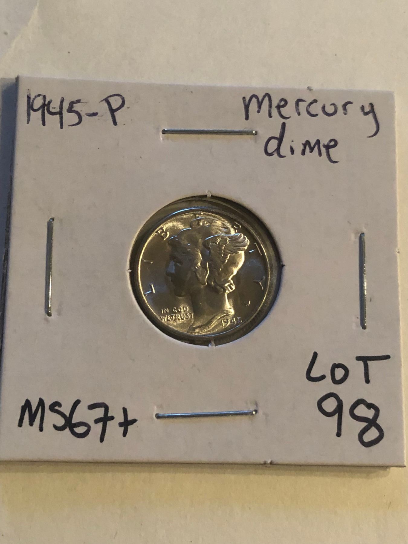 Rare 1945 P Silver Mercury Dime in MS67+ High Grade