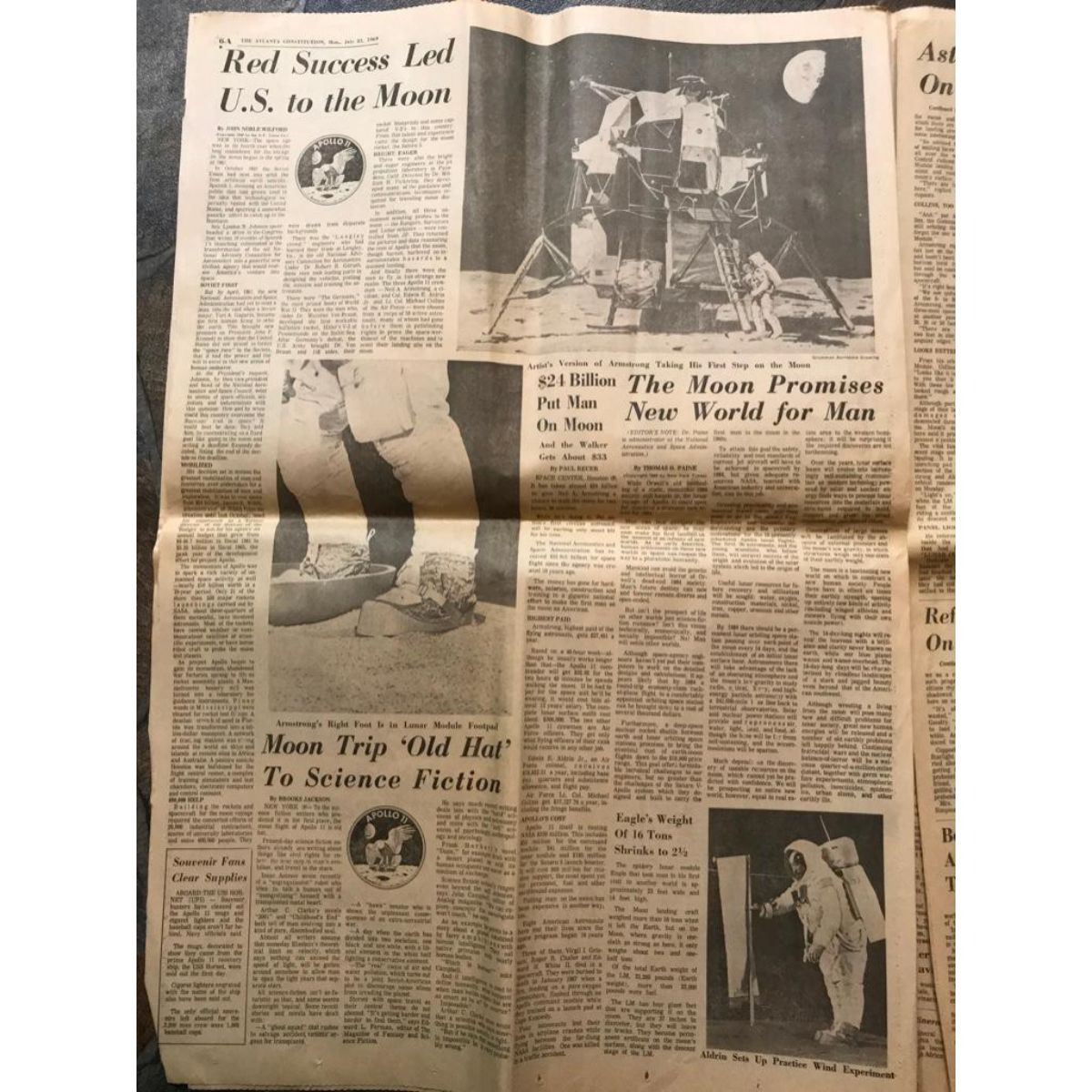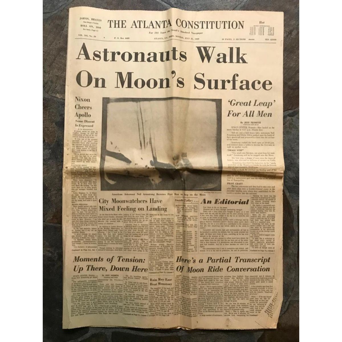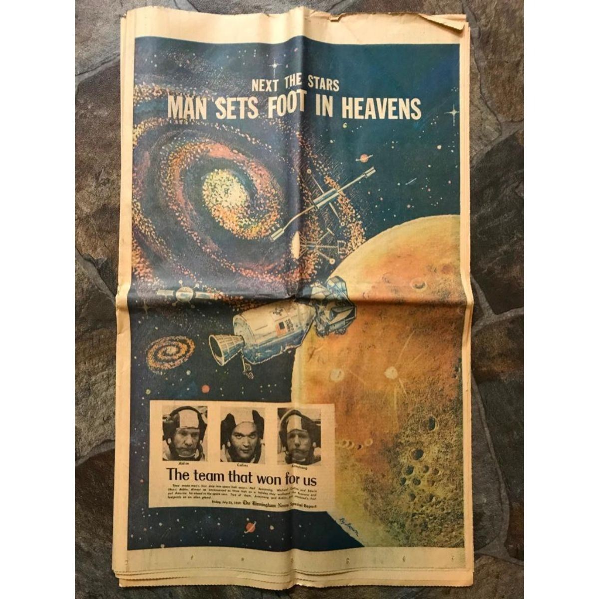 Two rare 50 year old newspapers covering the astronauts landing on the moon. The Atlanta Constitution July 21, 1969 with headline, Astronauts Walk On Moon's Surface. Â Most articles in issue devoted to moon landing, with ads of the day. 10 pgs. The Birmingham News Special Report, supplement newspaper dated July 25, 1969. 24 pages with both articles & ads additionally devoted to the famous moon landing. * both issues with folds & wear per photos.