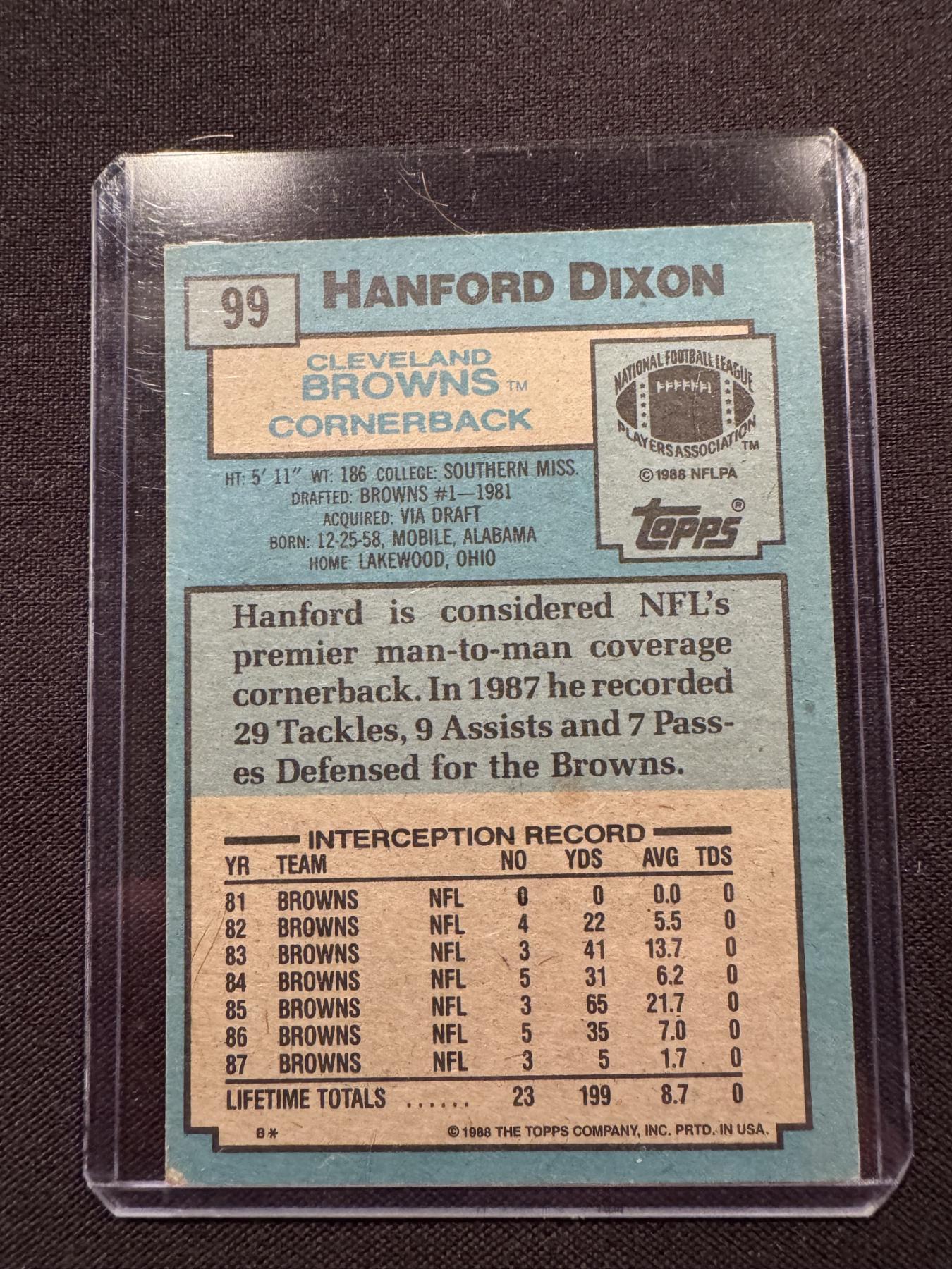 Rare 1988 Topps Hanford Dixon Autographed Football Card - Mint Condition