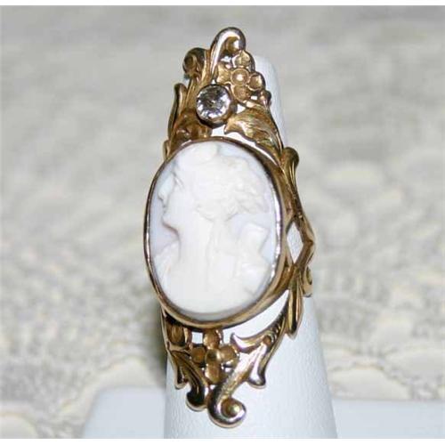 <tr><td>Title:Rare 19C 14K Gold Shell Cameo 1CT Diamond Ring</td></tr>