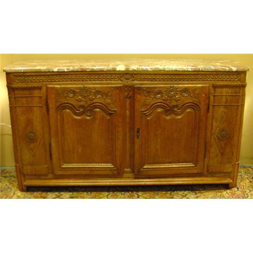 Rare 19th C. French ?Gibiles? Buffet De? Chasse. Oak & Marble Breche from Normandie. Buffets De Chasse were usually found in Hunting Manor Houses & rarely come on the market. A wonderful find.