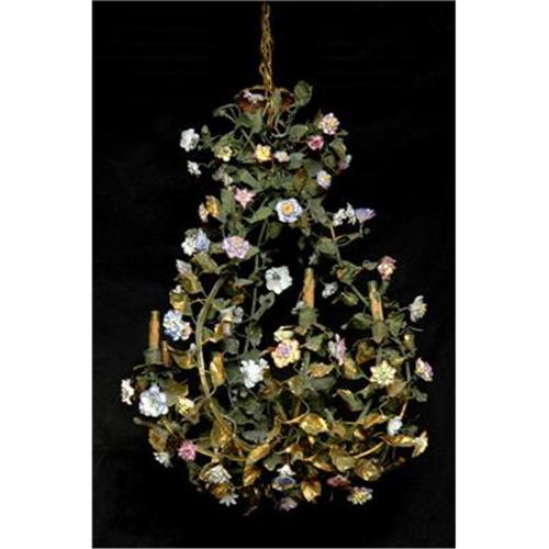 A rare 19th C. Chandelier made of iron, brass and porcelain