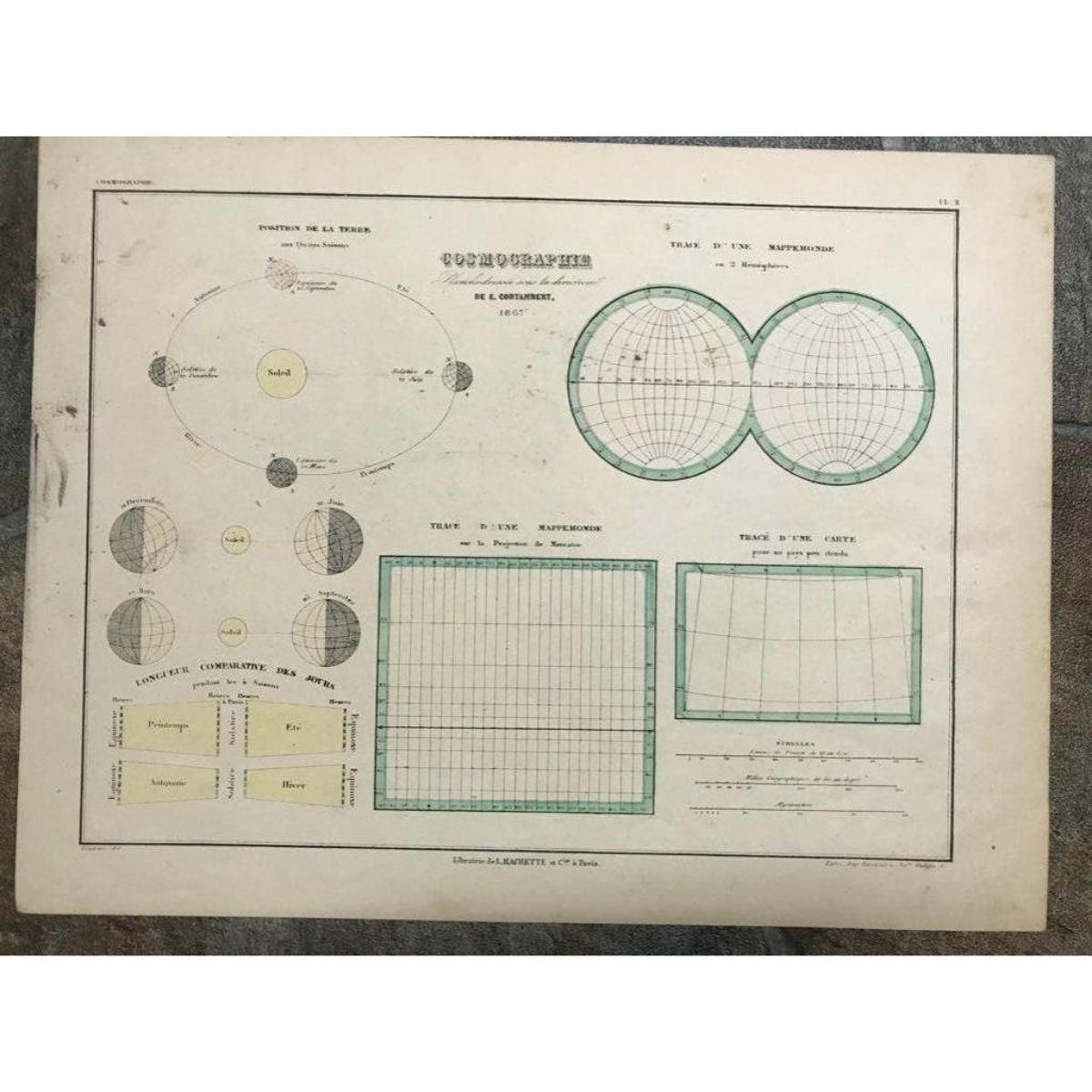 Rare 1867 Antique French hand-colored map, plate, Cosmographie, from Geographie Moderne. Showing orbit of Earth around the Sun. 10" X 13". In original American Heritage Gallery packaging.