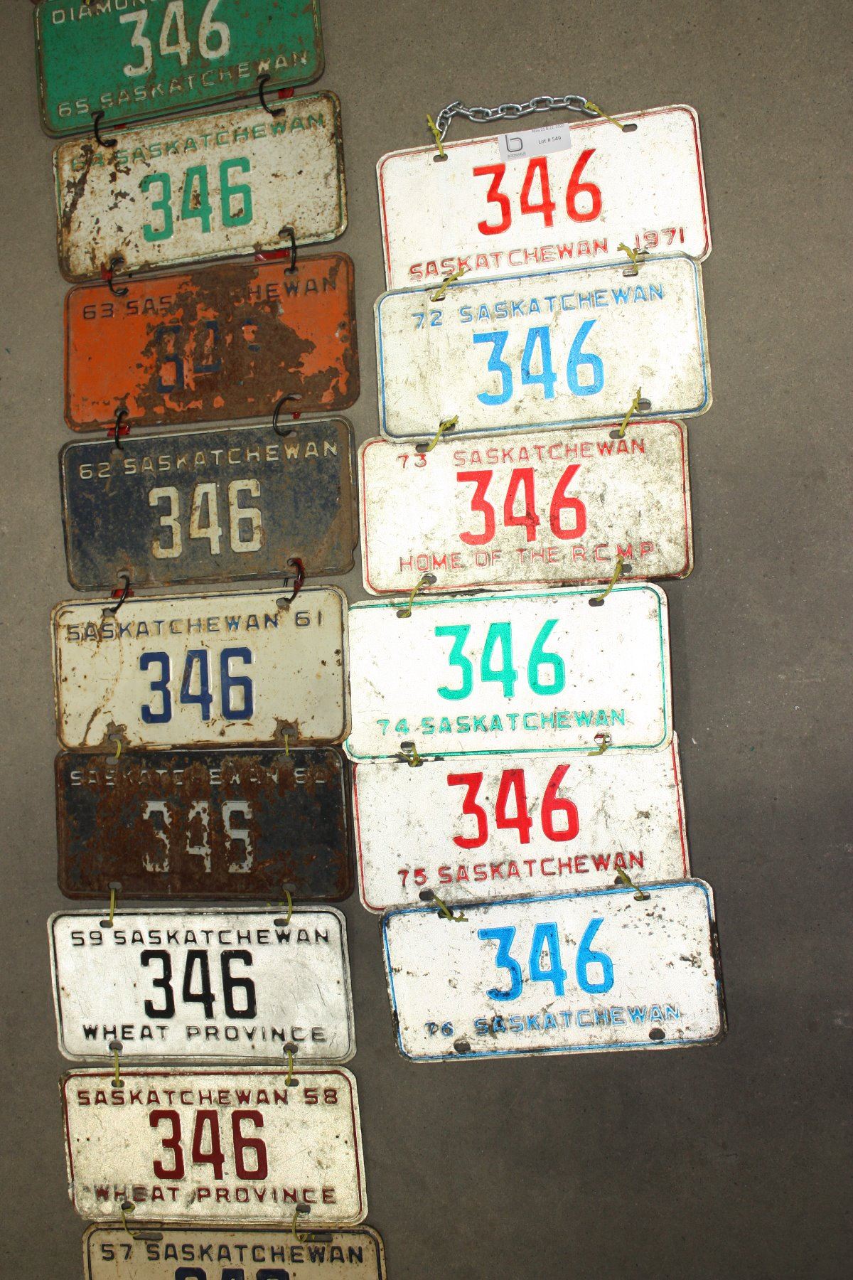 Rare 22 Years of License Plates low number, 346 1950s 60s & 70s
