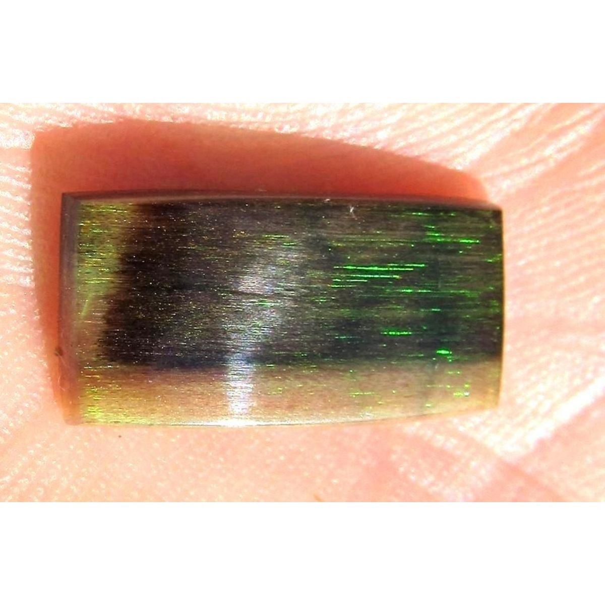 3.2ct rare Virgin Valley Nevada Wood Opal. Beautiful natural woodland colors, with laser pinfire in bright light. Appx. size: 17 x 8.5 mm - 2 mm thick. Nice stone for mounting into a pendant. * Virgin Valley Nevada Opal material is almost all wood that has been replaced by opal. Most contain a high percentage of water in their structure, & they often crack or craze when dried, making this kind of opal quite rare in dry stable form. * This stone has been stabilized with resin to strengthen the wood, but the resin does not affect the opal. Â