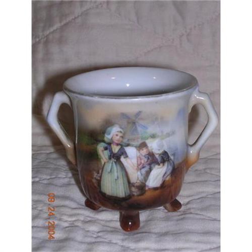 Royal Bayreuth Dutch Children Toothpick Holder. RARE 4-footed version with 2 side handles. Soft beautiful colors. Excellent condition with no chips, cracks, or repairs. Some wear on the gold rim. Marked with blue mark. We carefully pack and double box all of our fine china and glassware.