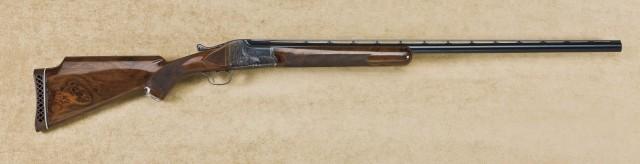 Rare AH Fox 12ga single-barrel trap shotgun, 32” barrel, ventilated trap type rib, factory scroll engraved action, select pistol grip trap-style stock, serial #400231. Choked Modified, and remains in very good condition showing 90-95% original blue on barrel. 75-85% case hardening on action and triggerguard which is starting to age and tone with some beginning erosion and pinrprick pitting and loss of finish on triggerguard. The grip cap is nicely engraved “AH Fox”. The stocks show approx. 90% of their original varnish just some light cracking and minor crazing and fit up to the metal nicely with good crisp checkering. The action is tight, the bore is bright and looks like it will clean to excellent. The stock measures 14-1/2” to the end of the wood, 15-1/2” to the end of the added Pachmayr recoil pad. Est: $2,000 - $4,000