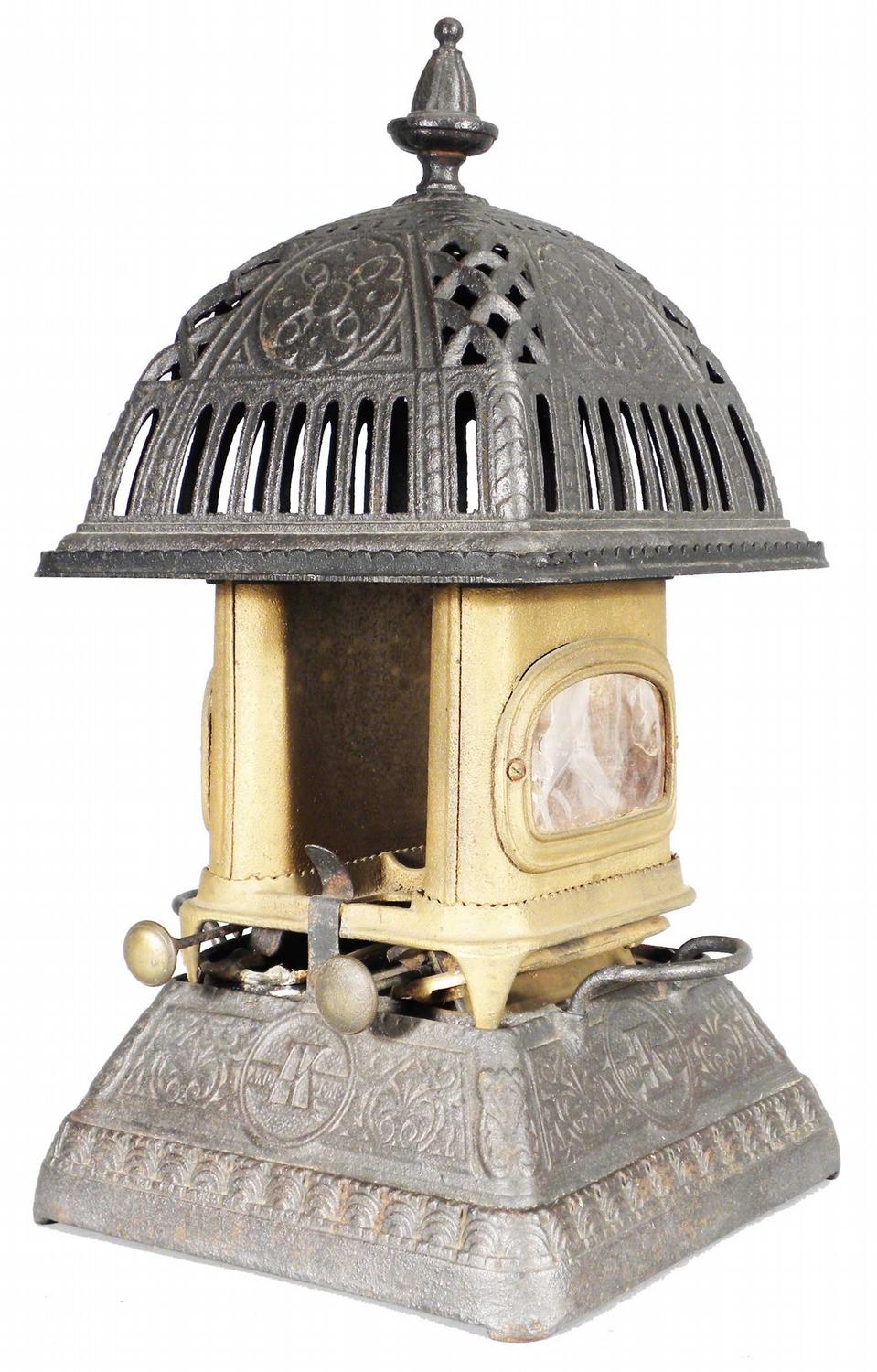 Extremely Rare AK and Sons Covered Wagon Stove. Cast iron, with original isinglass. Excellent condition. 10 X 18 X 9 1/2 inches.