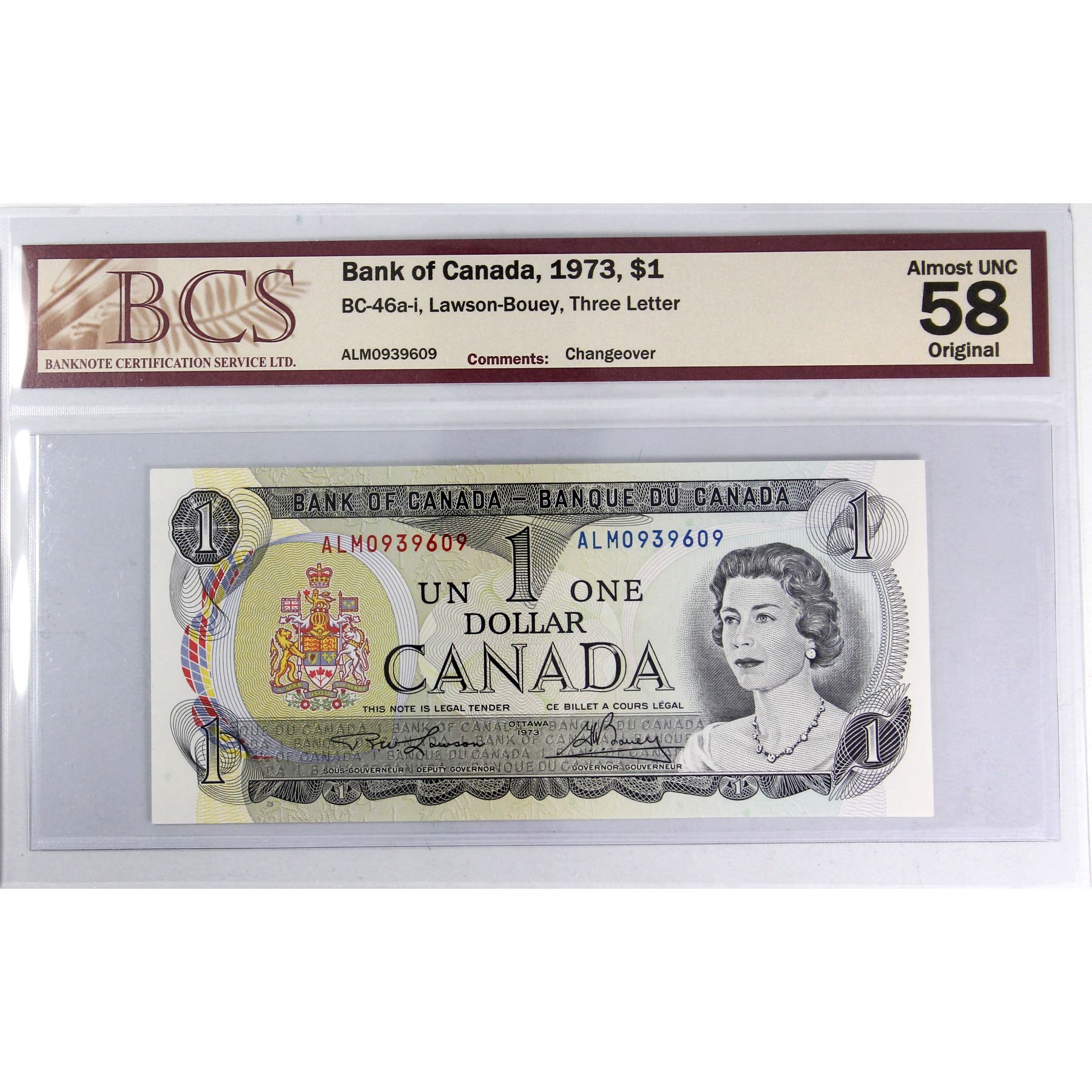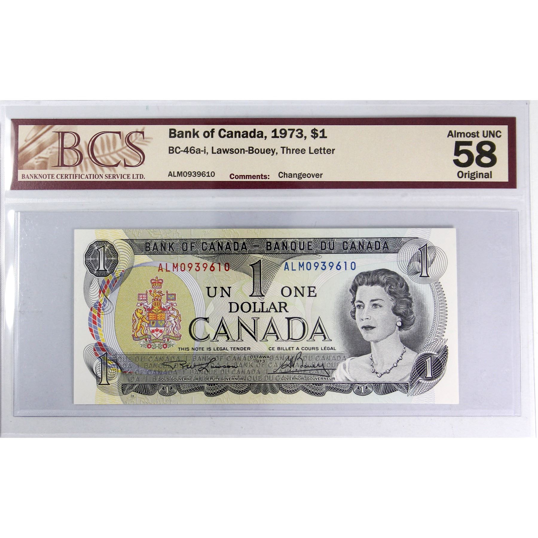 Rare ALM Prefix BC-46a-I Consecutive 1973 $1 BCS AU58 Original, Lawson-Bouey, Includes: ALM0939608, ALM0939609, & ALM0939610. 3 notes