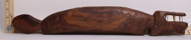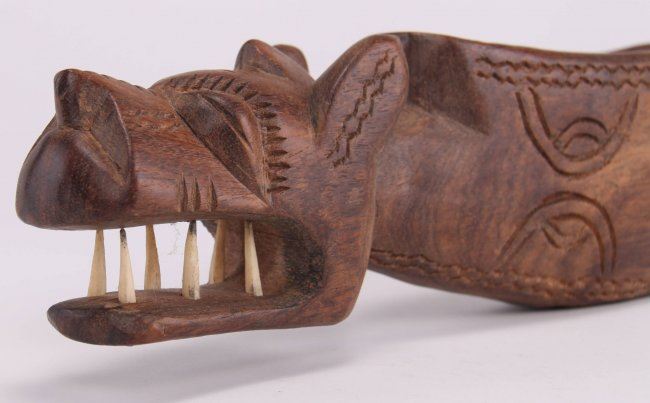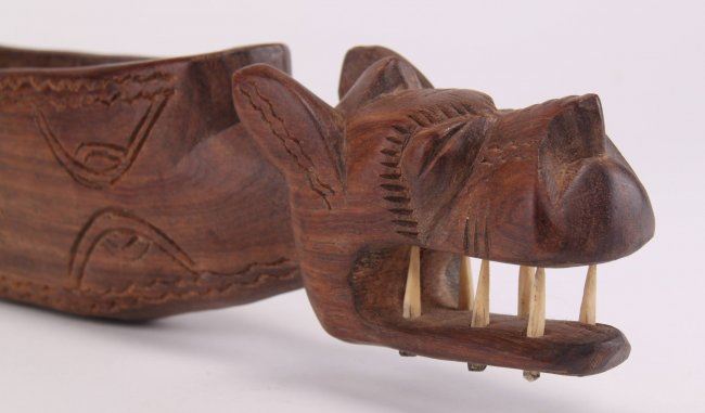 Rare African Ceremonial Dogon Vessel or Trough of a Lion with bone teeth, early 20th Century. Provenance: Private collection collected between 1910 and 1930. (Size: See second photo for measurement.) Photos are part of the description representing the condition report. Pangaea Auctions urges Bidder's to view all attached photos.