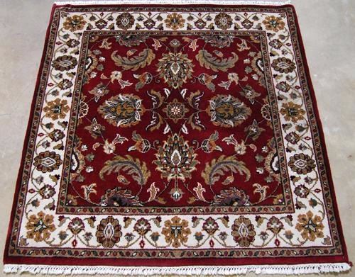 Rare almost square shaped Indo Mahal, size 3.11 x 4.1 feet, made of fine quality lamb's wool pile on cotton foundation, all natural vegetable dye, this a very nice looking rug with a shape that is very rare and hard to find these days. Hand woven in India.