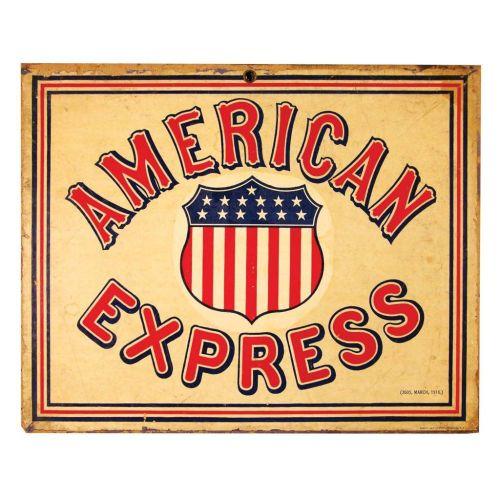Very rare American Express two sided calling card, hardboard, 1916. One side good condition the other fair, missing metal frame. 15 X 12 inches.