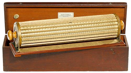 Rechenwalze "Edwin Thatcher", 1881 Große amerikanische Rechentrommel, patentiert von Edwin Thatcher am 1. November 1881. Vertrieben durch "Keuffel & Esser, New York". Mit Original-Holzkasten und Anleitung. - Ein Top-Sammlungsstück!