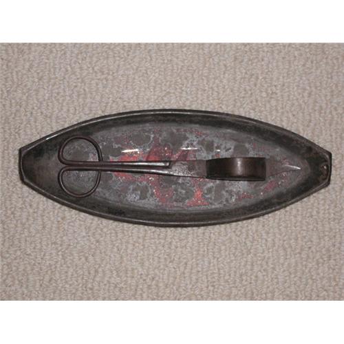 Rare American Tin Candle Snuffer/Wick Trimmer and matching Tray. Very rare to find the pair together.Tray is 9in.long. Snuffer is 7in. long.