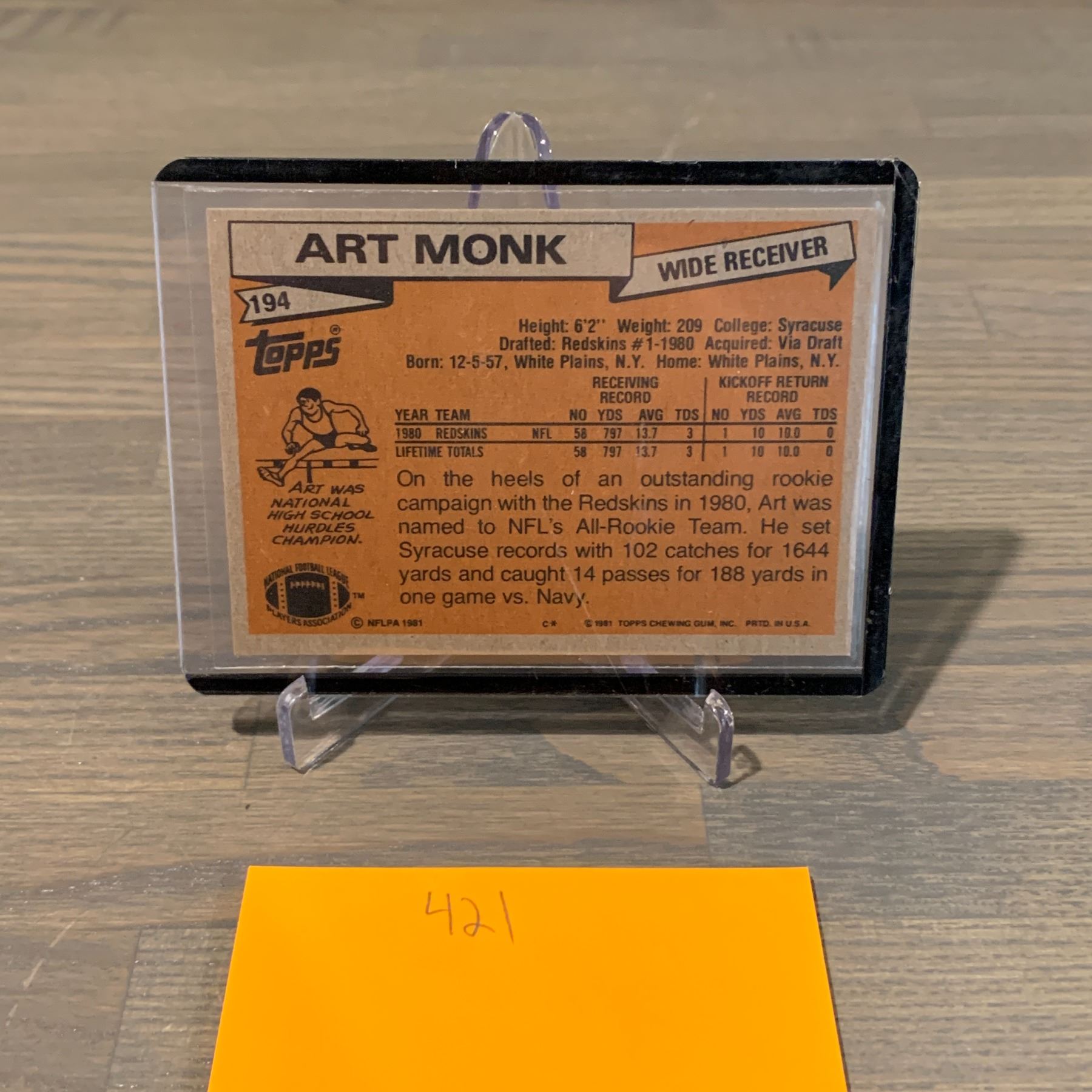 Rare Art Monk #194 Topps Football card. We are a veteran owned company. Please look at the pictures carefully to determine what you believe the condition of collecitible is. We are currently accepting consignments. Email us a aeronhouse1994@gmail.com or visit our website, www.ahauctionhouse.com. We are currently seeking Star Wars related consignments