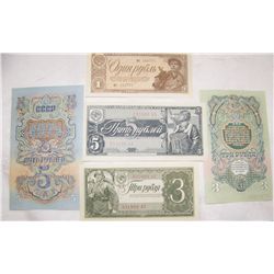 LOT OF (5) CRISP, UNC. U.S.S.R RUBLE NOTES 1947