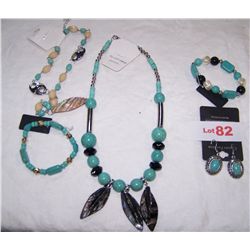 (5) PIECE ASSORTED JEWELRY LOT INCLUDING (2) NECKLACES (2) BRACELETS (1) PAIR OF EARRINGS