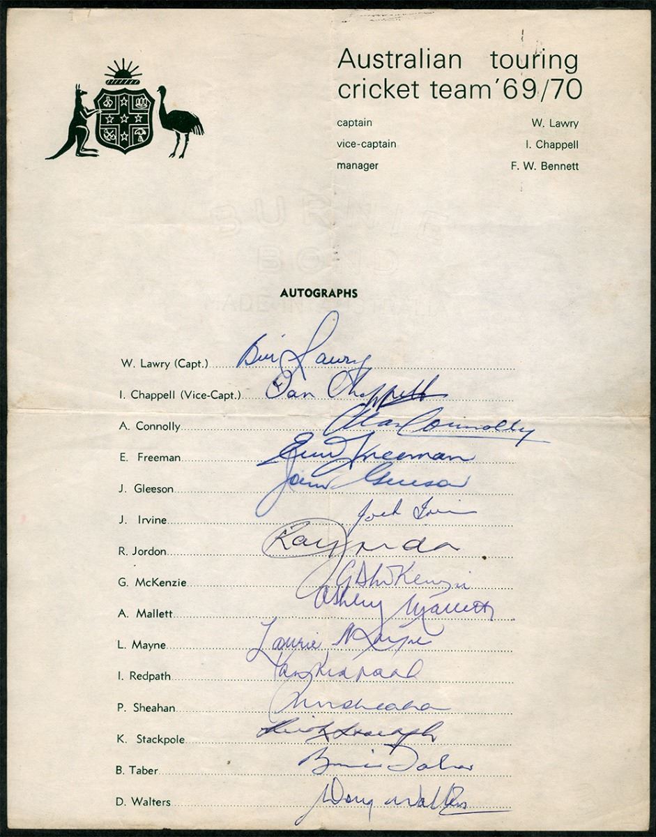 Rare Autographs of the Australian Touring Cricket Team 69/70.