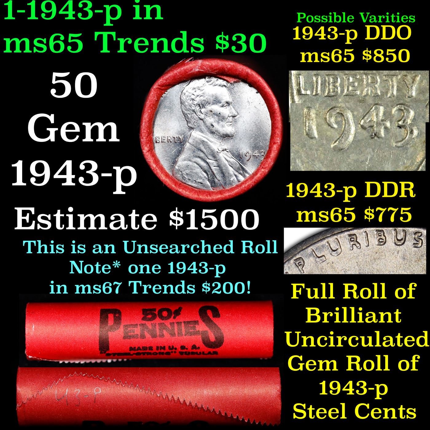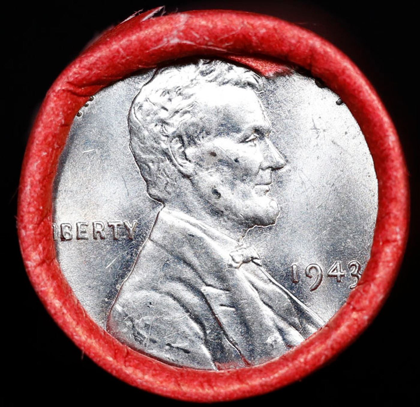 Rare BU Shotgun Lincoln 1c roll, 1943-p 50 pcs Steel-Strong Wrapper 50c
