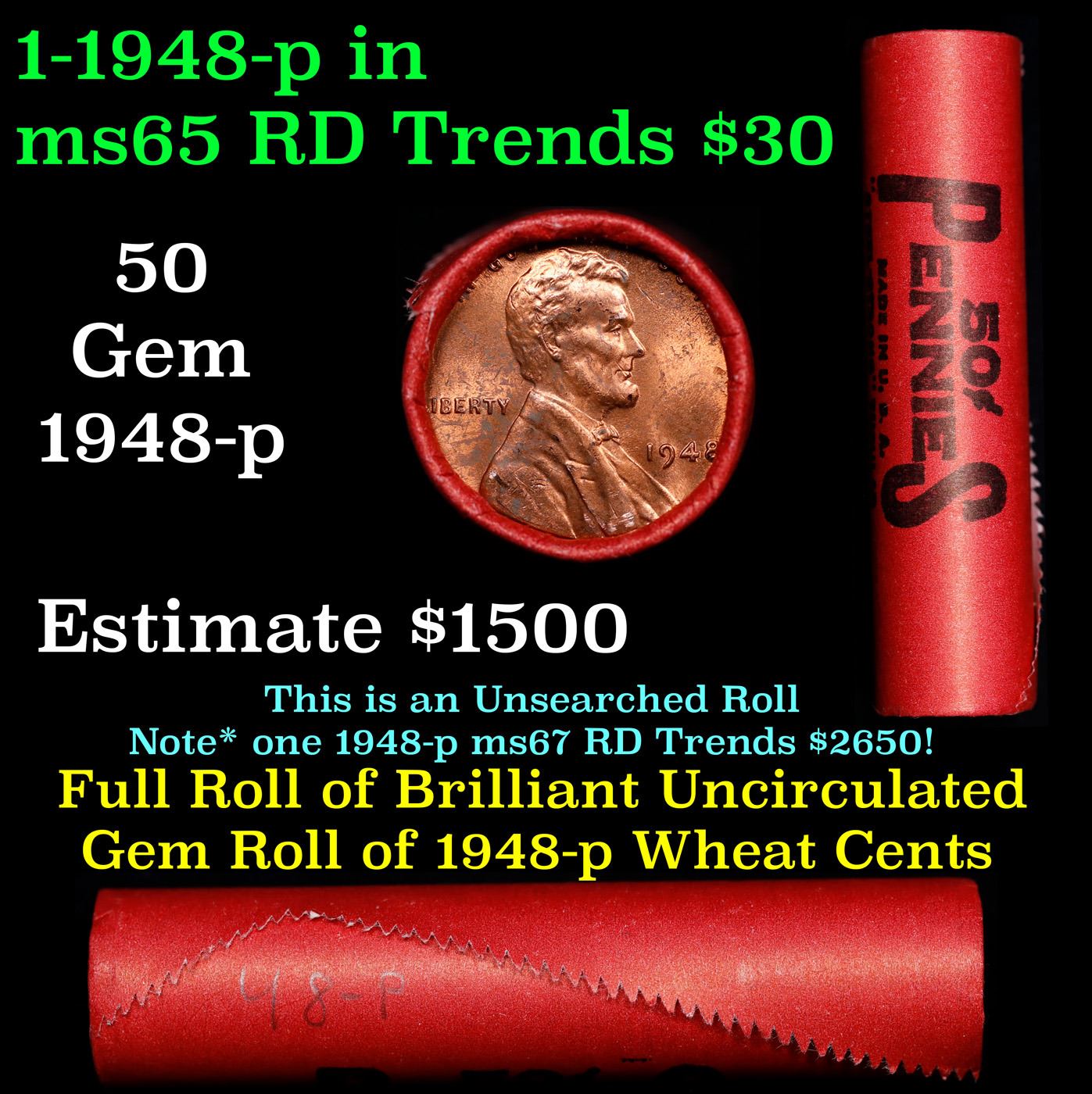 Rare BU Shotgun Lincoln 1c roll, 1948-p 50 pcs Steel-Strong Wrapper 50c