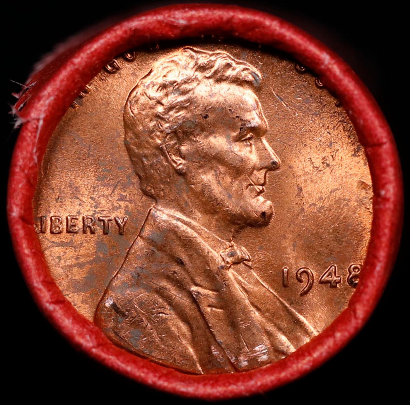 Rare BU Shotgun Lincoln 1c roll, 1948-p 50 pcs Steel-Strong Wrapper 50c. A terrific Shotgun roll of Lincoln cents in a steel strong wrapper. Most if not all coins should be cherry red.