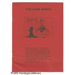<B>Rare Barks #nn (Publisher Unknown, 1990) Condition: NM.</B></I> This is a rare fan-published 7.5" x 10.25" softcover booklet featuring black-and-white reprints of several Donald Duck stories written and drawn by Carl Barks. These stories -- "The Milkman Story", "A Christmas Carol", and the French-language one-pager "Donald Tente" -- have never officially been published in the United States. Also included are two stories considered scarce by Barks collectors -- "Mickey Mouse and the Riddle of the Red Hat" (Barks' only attempt at a Mickey story, originally printed in <B>Four Color</B></I> #79) and "Donald Duck Tells About Kites", from a rare 1954 giveaway comic published only in California and Florida.