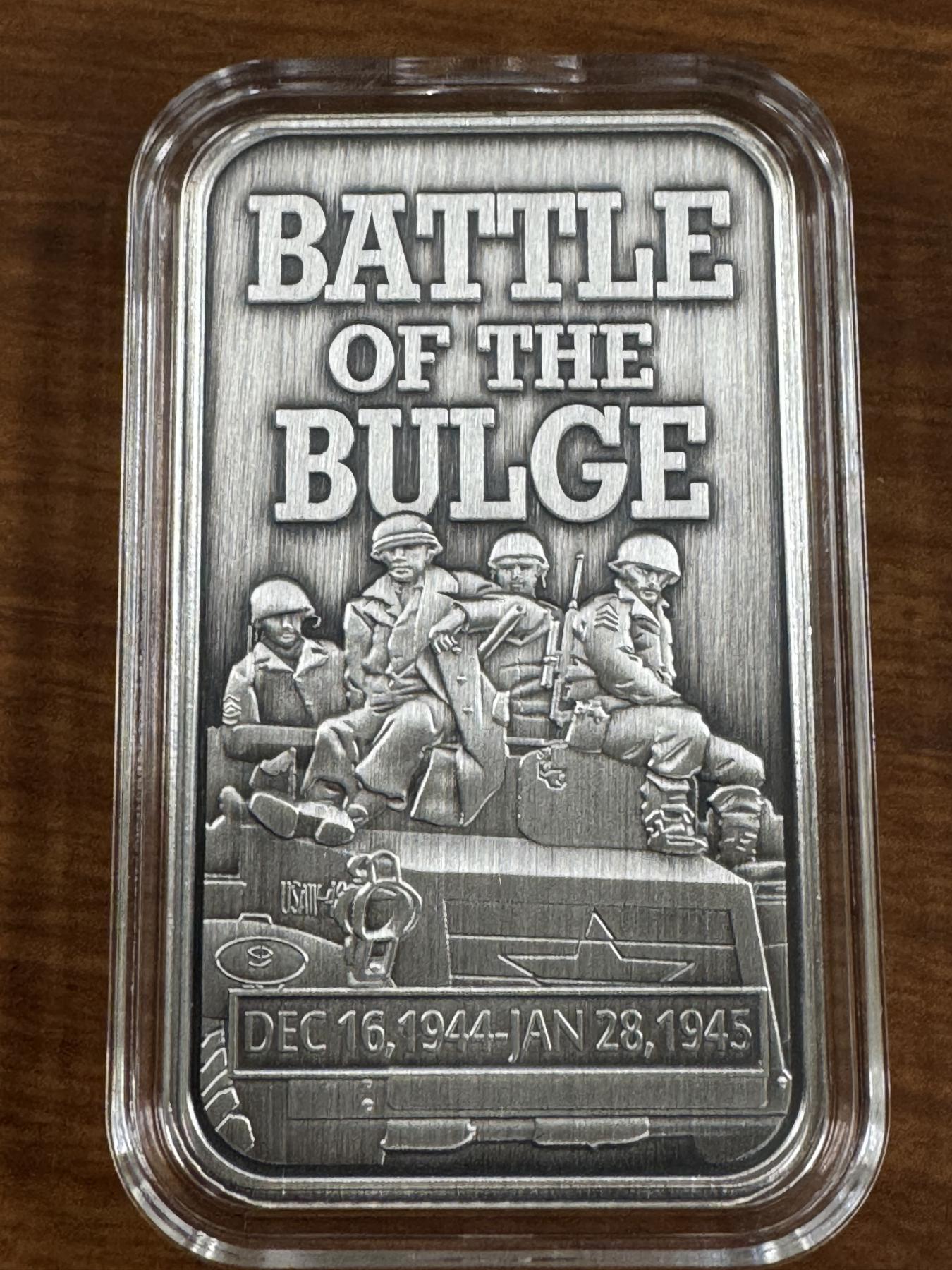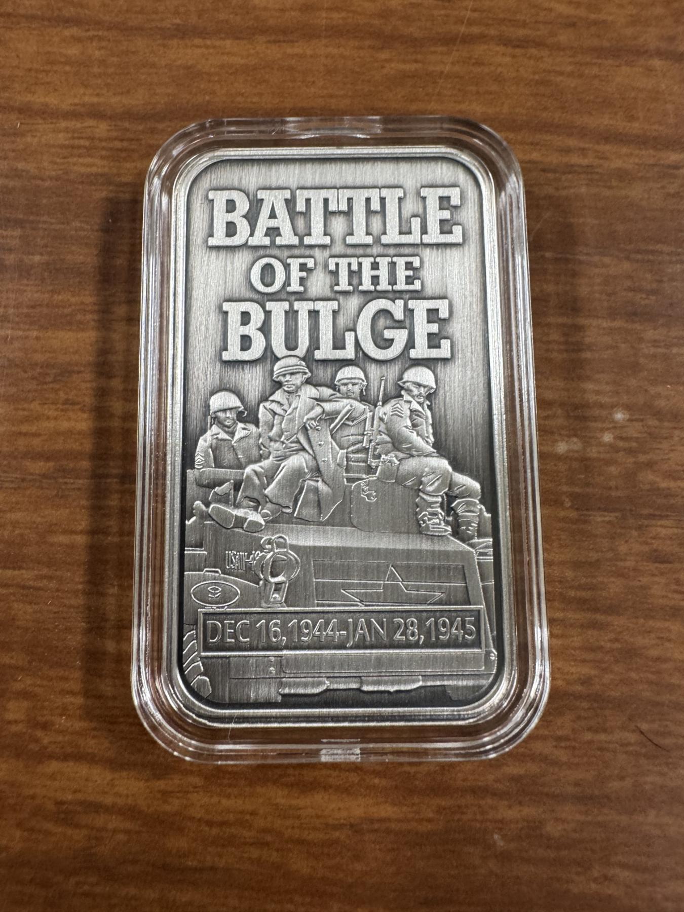 Rare Battle of The Bulge One Pure Ounce .999 Fine Silver In Holder - Mint Condition