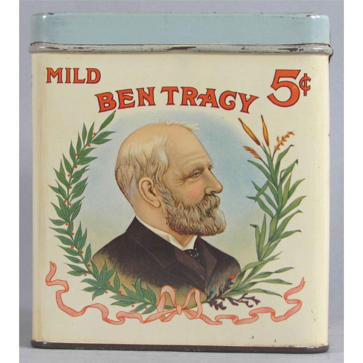 Rare Ben Tracy 5 Cent Cigar Tin for 50 Cigars. Made by Liberty Can Co. Near mint condition. 4 3/4 inches square X 5 1/4 inches tall. Start Price $30