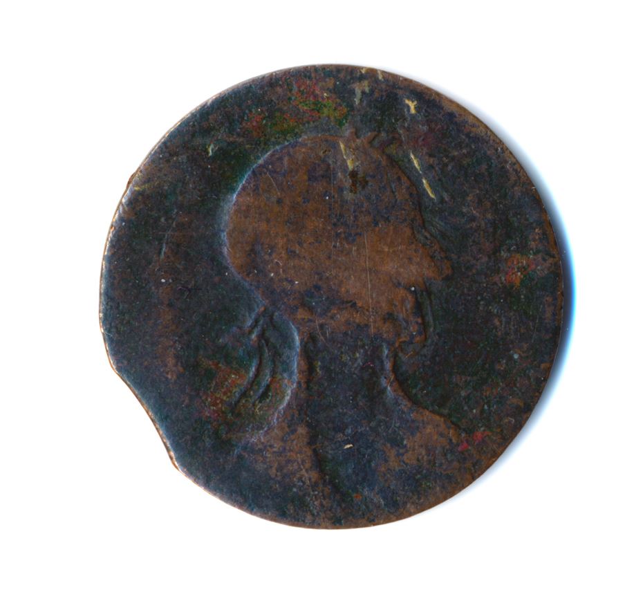 Blacksmith, Imitation of a Tiffin token, Bust right, Seated Justice, dated 1820, Br.1008, BL-24A1, copper, Medal die axis, 6.35 gms, 26.71mm. Fine, planchet clip. Rare.