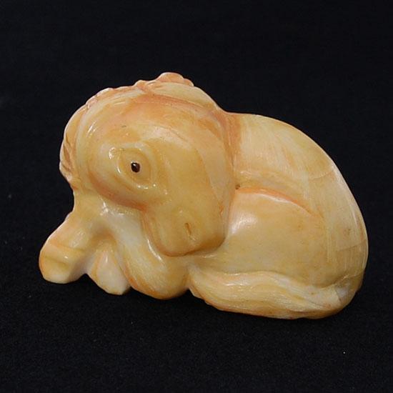 Excellent museum quality vintage pre-ban elephant bone/ivory handcarved netsuke. Zodiac Ram.