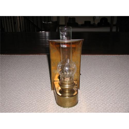 Rare Brass Reflective Oil Lamp/Lantern. It has now been electrified. The bottom held fuel oil and the curved back would reflect the light to enhance the coverage of light in the room. It is fitted with the original globe which has the makers identity etched on it. Schutz-Mark Camero Very unique and decorative.12in.x 5in.base.