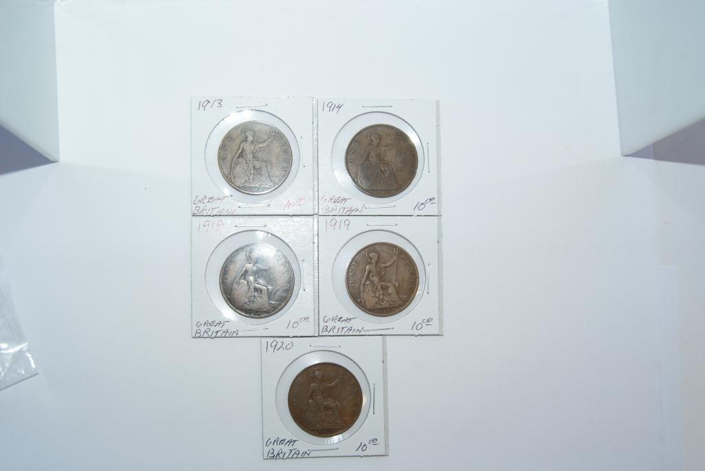 Rare British Pennies- 1913, 1914, 1918, 1919 and 1920 Sold Times the Money