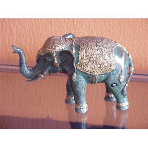 Rare Bronze Elephant Figure, made in India in bronze plated in gold and green, very good condtion, see photo