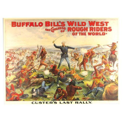 Very Rare Buffalo Bills Wild West and Congress of Rough Riders of the World Poster depicting Custers Last Rally. Outstanding color and graphics. Excellent condition. 38 1/4 X 28 1/2 inches