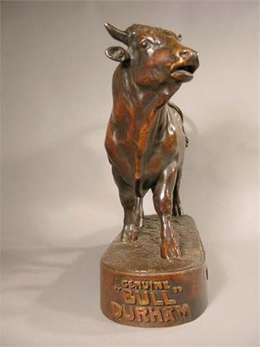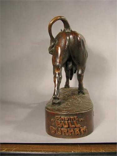 Rare Bull Durham bull statue. Tobacco store or saloon display. Plaster casting to look like bronze. The only one we have ever seen. 24" long x 18" tall, like new original cond.