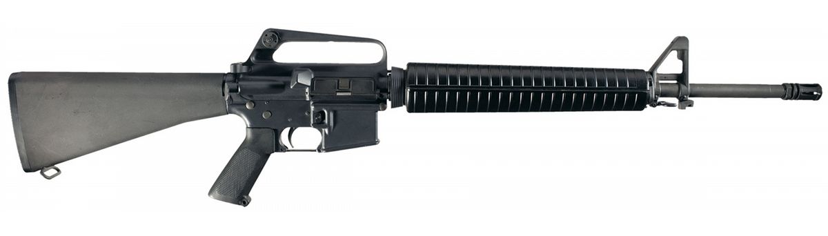 Produced circa early 1980s, using a SENDRA corp. full-automative lower receiver, originally configured as an XM15-82 carbine. It had been registered before the application of the Firearm Owners Protection Act. A1-pattern sight and flash hider configuration, with a "B MP 5.56 NATO 1/9 HBAR" barrel, A2 pattern receiver with BFI and Sendra Corp markings. Three position selector, with "SAFE", "SEMI" and "FULL" positions. Fitted with a ribbed round handguard, checkered pistol grip stock and a fixed buttstock with storage compartment.