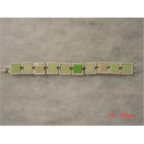 I've heard of most costume jewelry designers, but I have never heard of this one CALAIS?? I'm guessing this is probably from the 1950s or so?? Not sure what country this designer is from. Excellent craftmansship, this is a wonderful link enamel brick like bracelet in shades of light green. Good condition