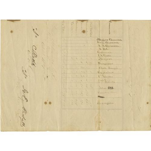 <B>Rare Confederate 'Pickett Surrender' Document Signed by His Brother,</B></I> “<I>C. Pickett</B></I>” by Major Charles F. Pickett and “G E Pickett”, secretarially by Charles Pickett, one page with docketing, 7.5” x 10”, April 11, 1865, Appomattox C. H., Virginia. This “<I>Last Return of Pickett's Division as surrendered April 9, 1865</B></I>” is composed of a hand-drawn grid on which the troops of each brigade of the division is noted. Officers and enlisted men are counted separately, with the former being further divided by rank. A total strength of just 987 makes up this tattered remnant of George Pickett's reduced division. Major General Pickett was not present to sign this final roll, leaving his brother, the division's Assistant Adjutant General, the task of doing so. Considerable fading to title, some stains, smoothed folds with small splits. Very good condition. <BR><B>Provenance:</B></I><I>The William Turner Collection</B></I><BR><BR><b>Shipping:</b> Miscellaneous Collectibles, Smal (<a target="_blank" href="http://www.heritageauctions.com/common/shipping.php">view shipping information</a>)