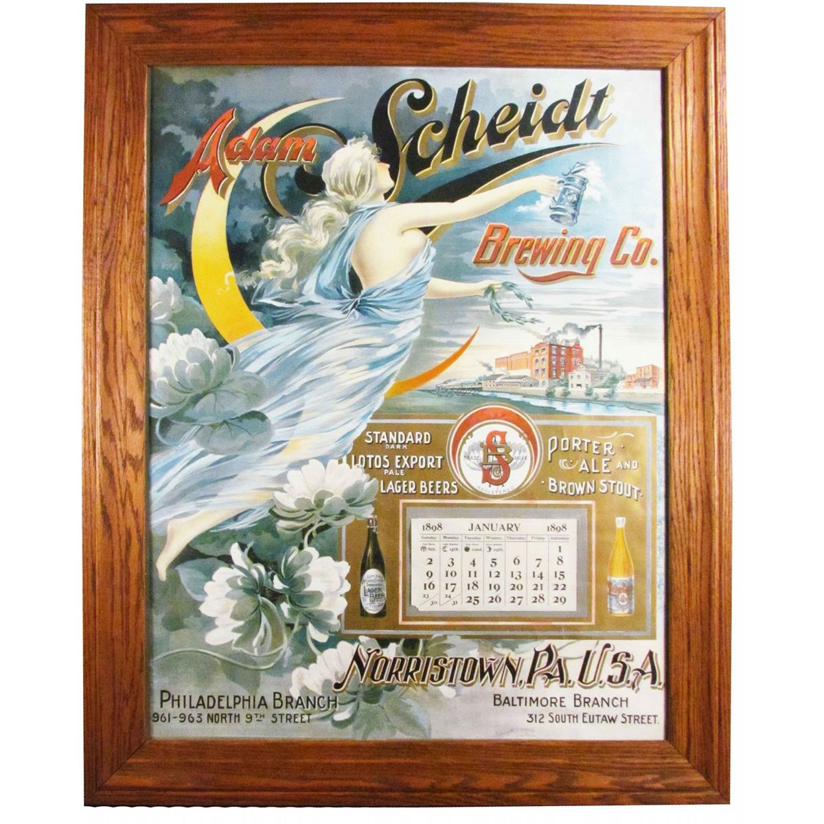 Rare Calendar for Adam Scheidt Brewing Co. Norristown, PA. USA. Extremely rare, the only one known. Framed under glass. Excellent condition. 21 X 27 inches image only.