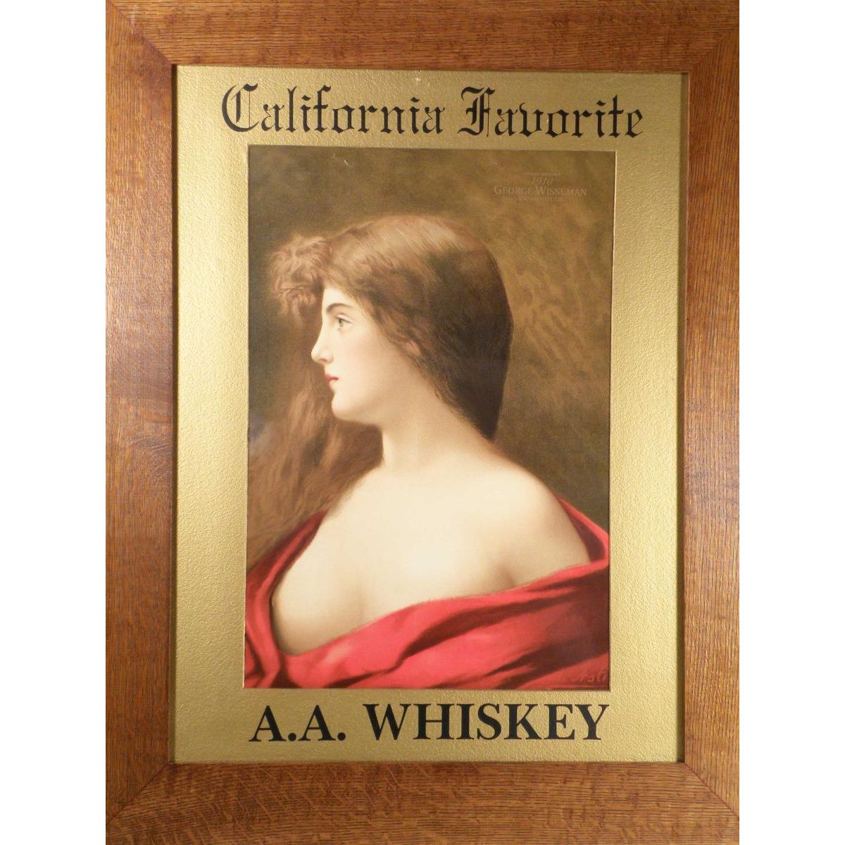 Rare California Favorite A.A. Whiskey Paper Sign. A. Asti, artist. Some minor scratches at 11/12 :00 otherwise excellent condition. 18 X 24 inches.