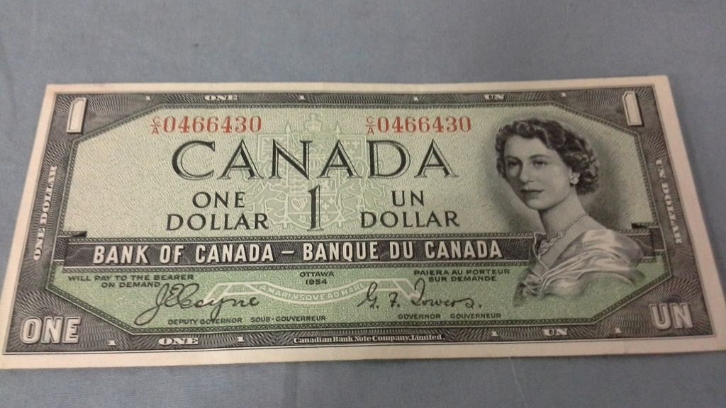 Rare Canadian Devils Face 1954 Canadian One Dollar Bank Note